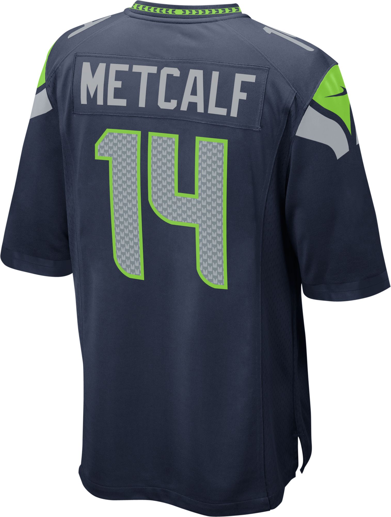 Up to 2 cash back Nike Womens Seattle Seahawks DK Metcalf 14 Navy Game Jersey. Metcalf 14 Navy Game Jersey. Mesh fabric side panels.